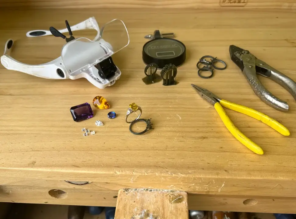 The design experience at the jewellers bench with loose stone and settings